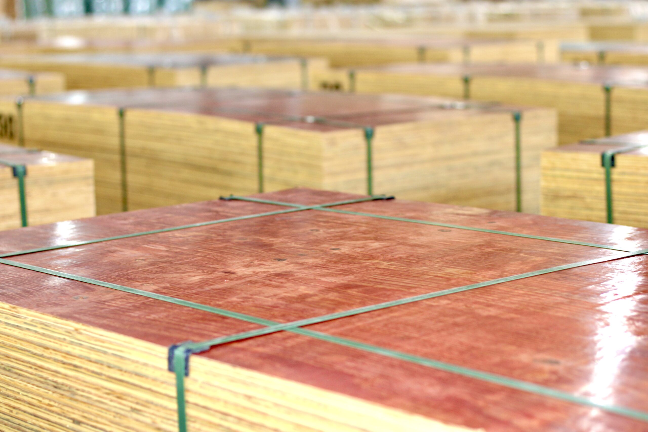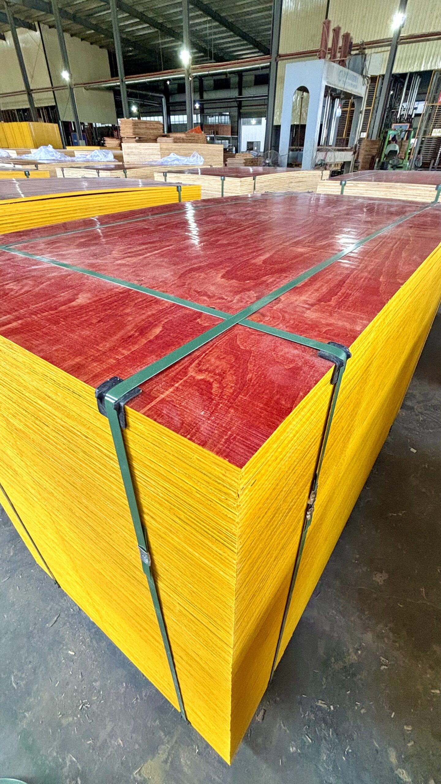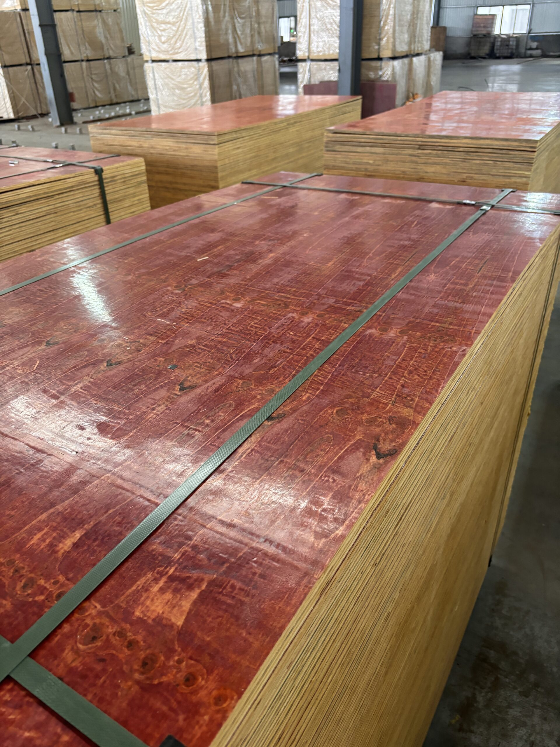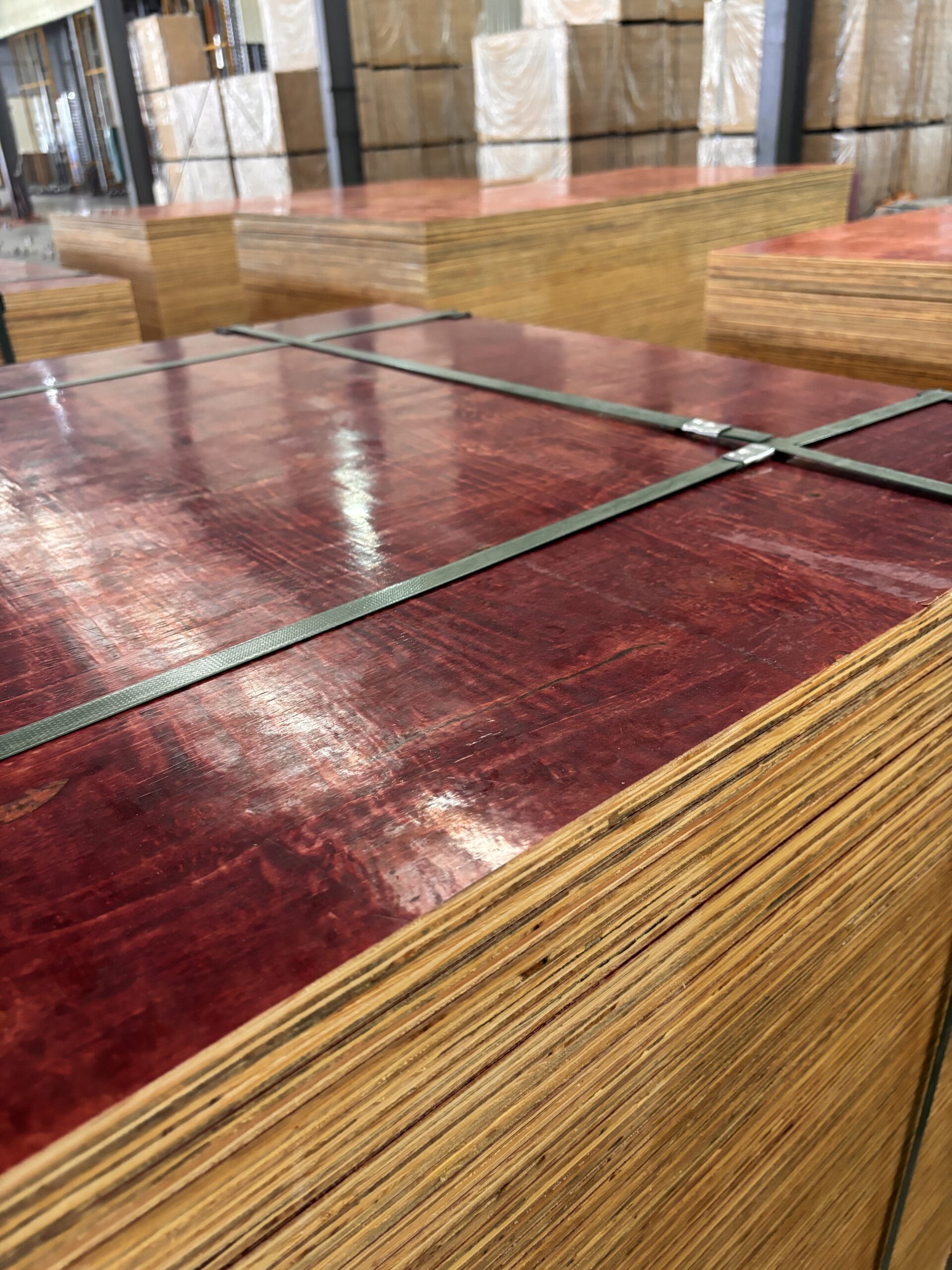 Red board, sturdy & durable, ideal for construction formwork, ensuring concrete shaping stability.